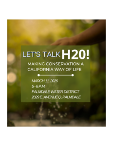 Palmdale Water District customers are invited to attend the next Let’s Talk H2O! event that will highlight the state’s new long-term water efficiency rules, also known as the Making Conservation a California Way of Life regulations.